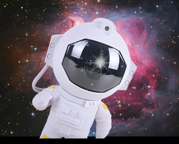 Com design moderno em formato de astronauta, este projetor cria uma atmosfera mágica, ideal para quartos infantis, festas, momentos de relaxamento ou decoração ambiente.